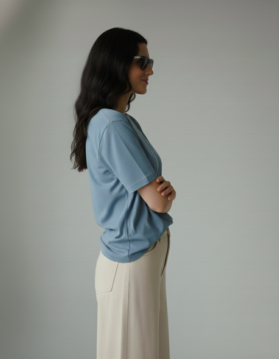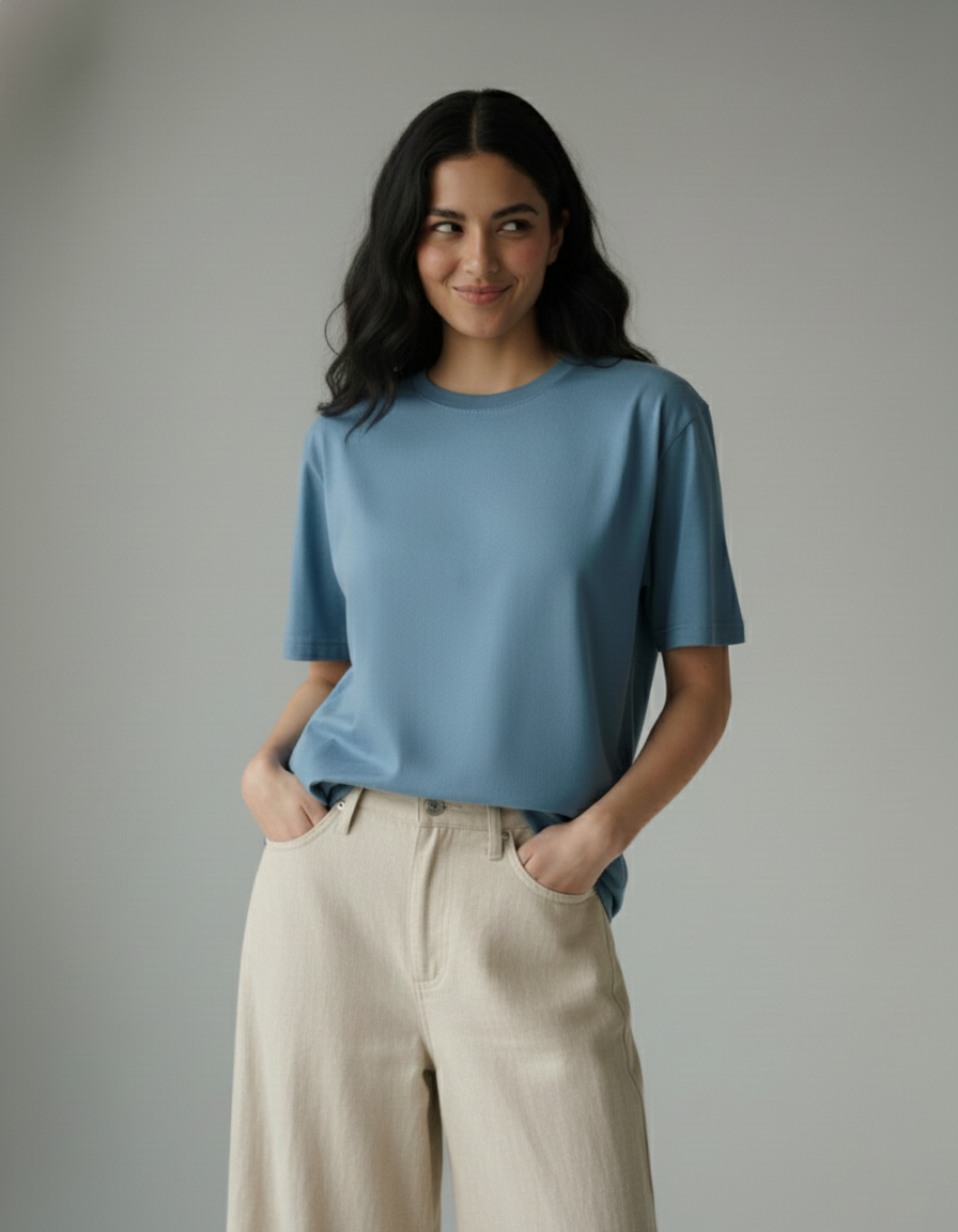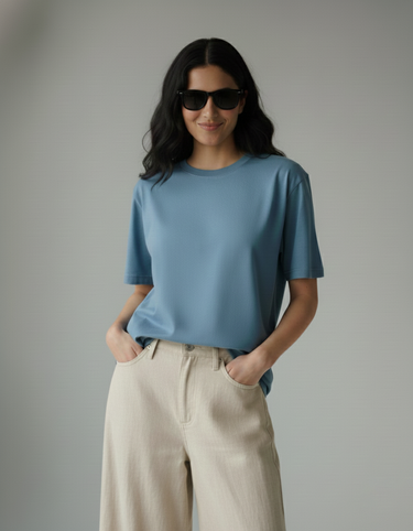 This Slate blue T-shir Made from breathable premium cotton, easy-to-wear fabric, it offers a relaxed fit that’s perfect for casual outings, weekend comfort, or mood-boosting daily wear. A blend of positivity and style, this tee adds a cheerful touch to any wardrobe.
