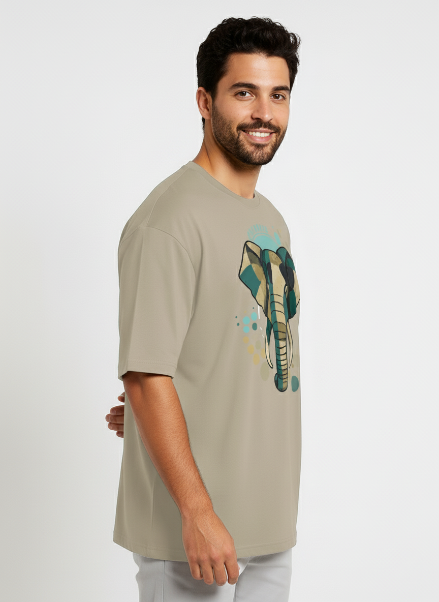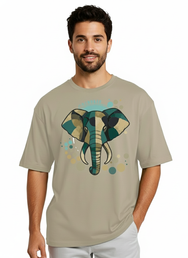 A bold reinterpretation of the elephant in striking geometric lines and earthy tones, the Elephant Echo Tee blends modern artistry with timeless symbolism. Crafted in luxurious French Terry cotton, it offers a soft, smooth outer finish with a breathable looped interior for day-long comfort. The oversized silhouette drapes effortlessly, uniting statement design with ease of wear.